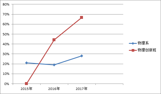 我院在2017年硕士研究生招生考试中,报考研究生49人,其中25人超过分数线,考研率达51%,再创佳绩。物理系共有二十二名同学考研上线,电气工程及其自动化专业、网络工程专业、电子信息工程专业各有一名同学考研上线。录取高校中,“985高校”两所,“211高校”五所。具体统计分析如下: